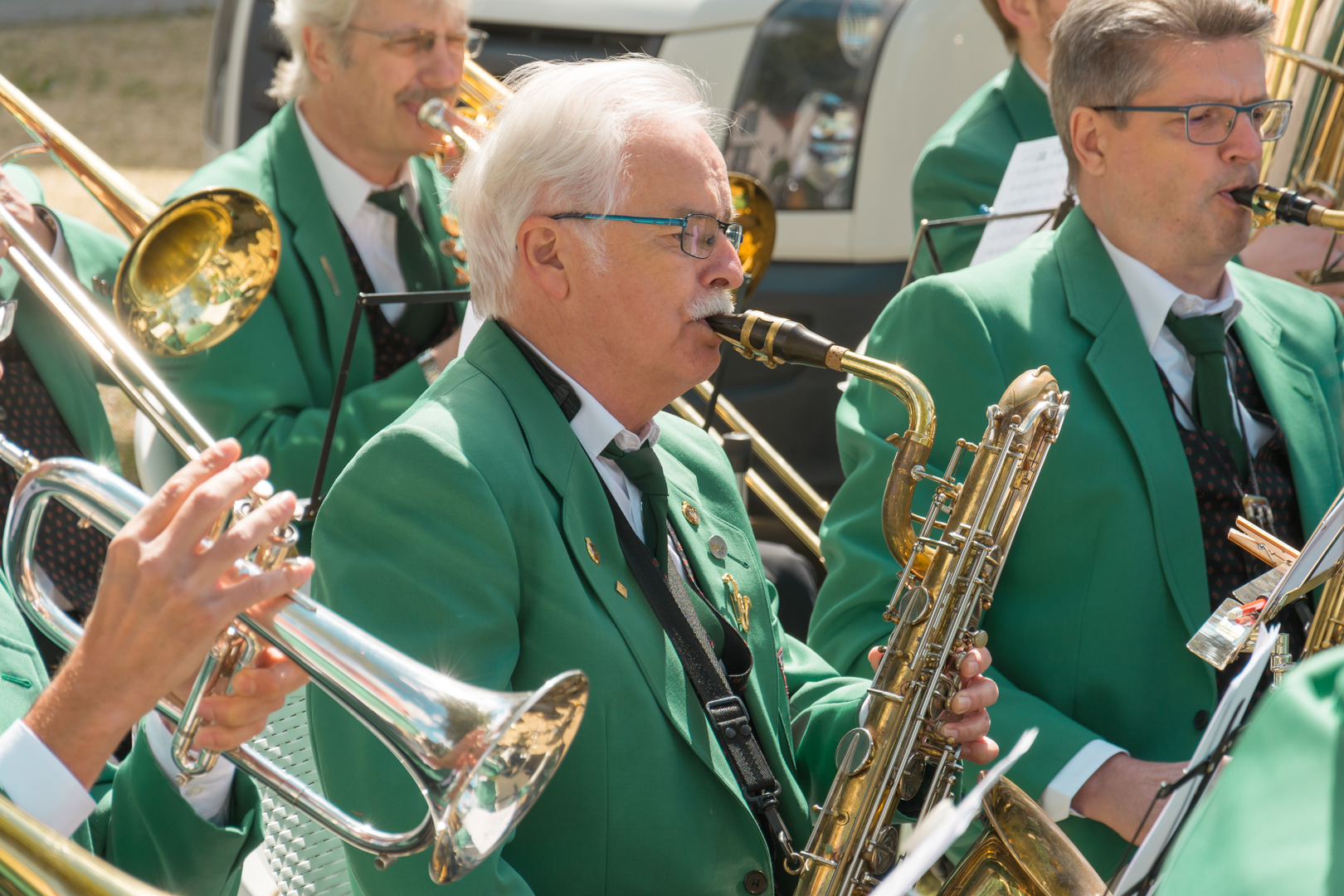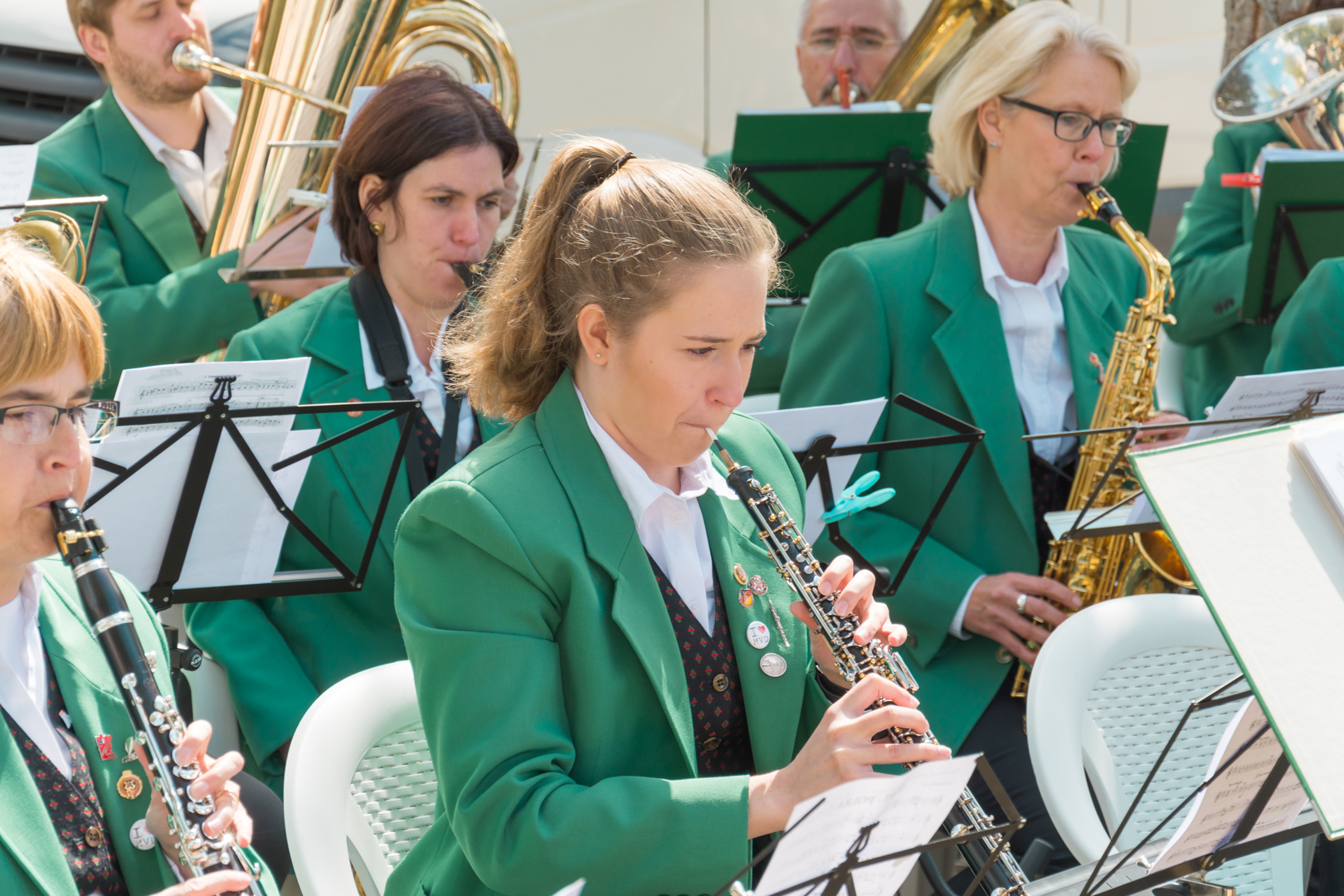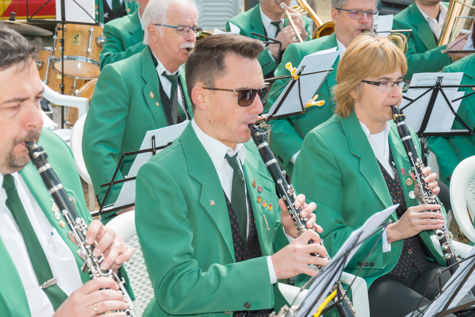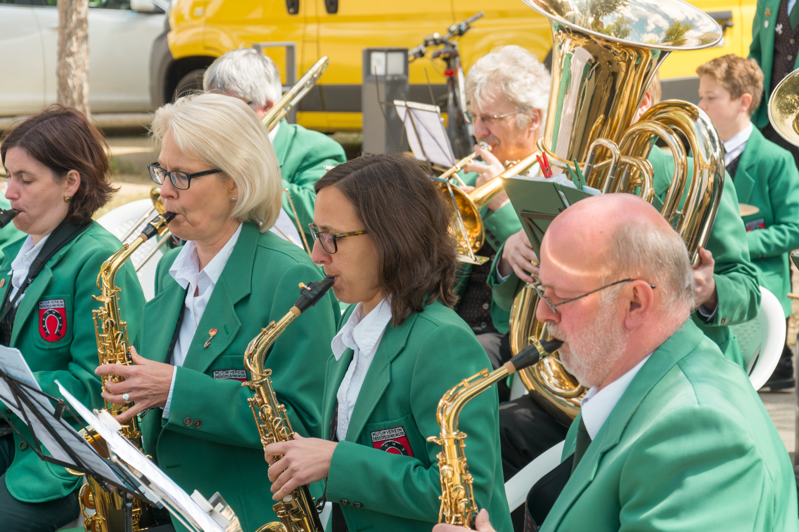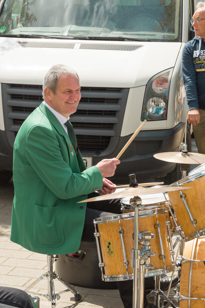 Das Blasorchester beim Maibaumstellen auf dem Dorfplatz in Diedesfeld
