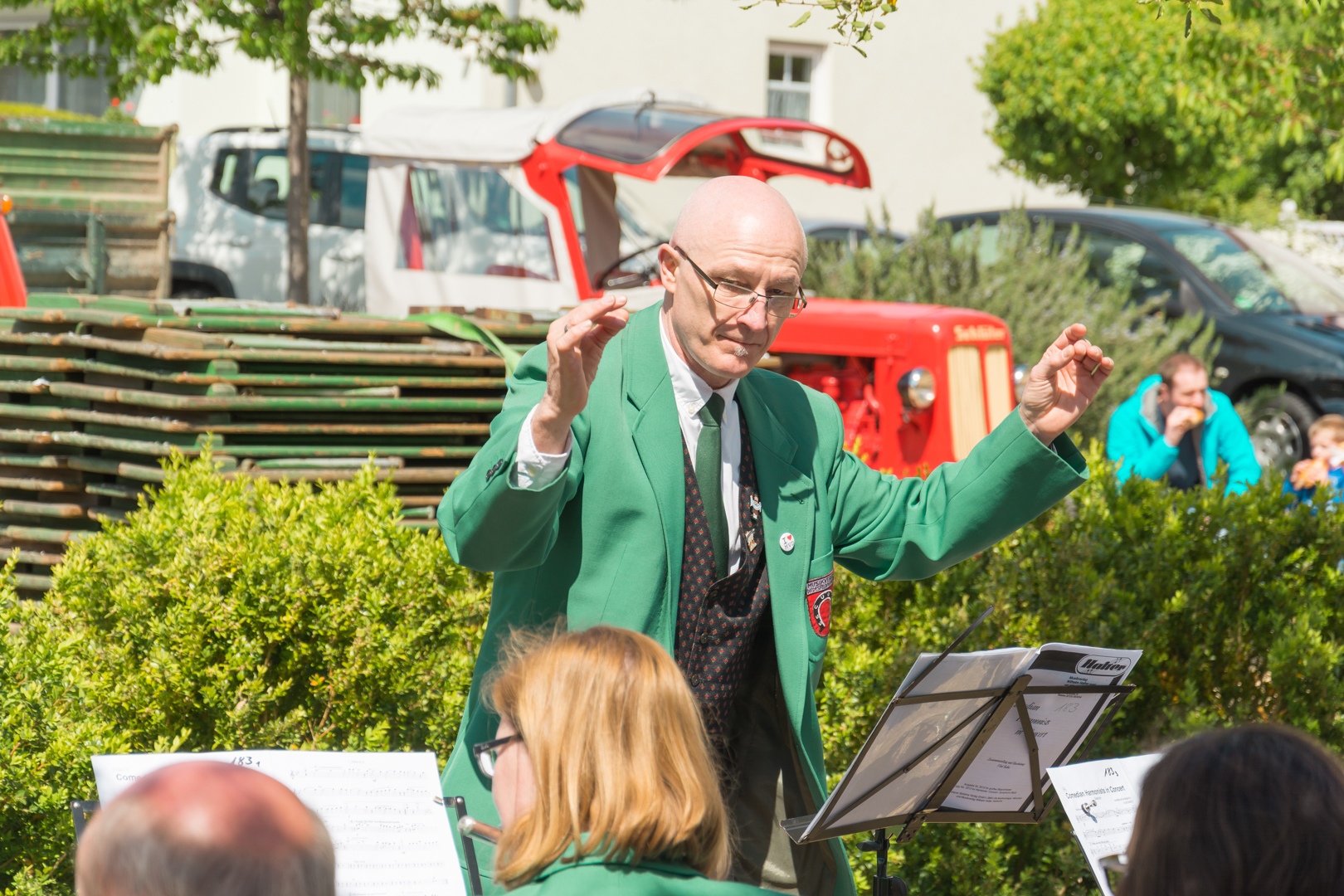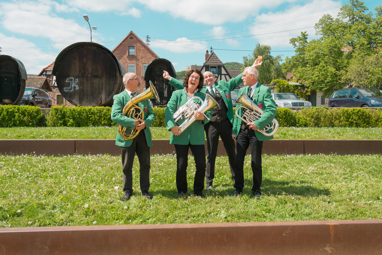 Das Blasorchester beim Maibaumstellen auf dem Dorfplatz in Diedesfeld